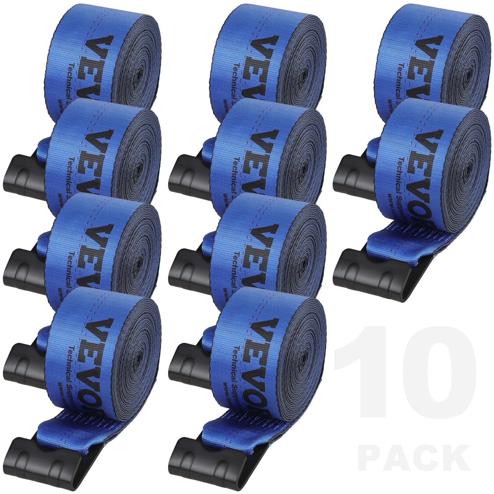 Winch Straps, 4" x 30', 6000 lbs Load Capacity, 18000 lbs Breaking Strength, Truck Straps with Flat Hook, Flatbed Tie Downs Cargo Control for Trailers, Farms, Rescues, Tree Saver, Blue (10 Pack)
